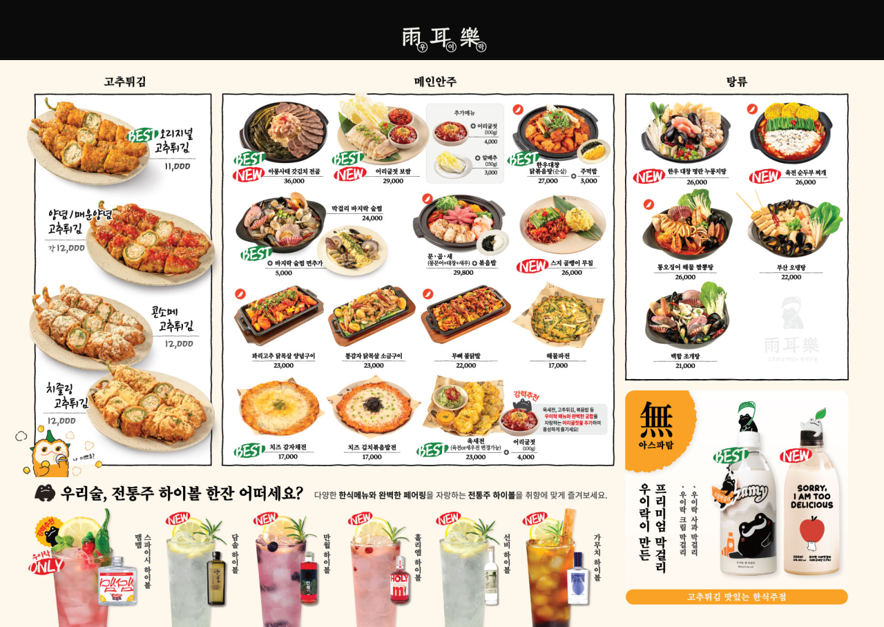 전국 1등 고추튀김 맛집 우이락이 오랜 시간 브랜딩한 감성있는 한식 술상. 양면적 매력의 모던 한식과 전국 팔도의 소문날 술로 1년 4계절 강력한 술집을 완성합니다.