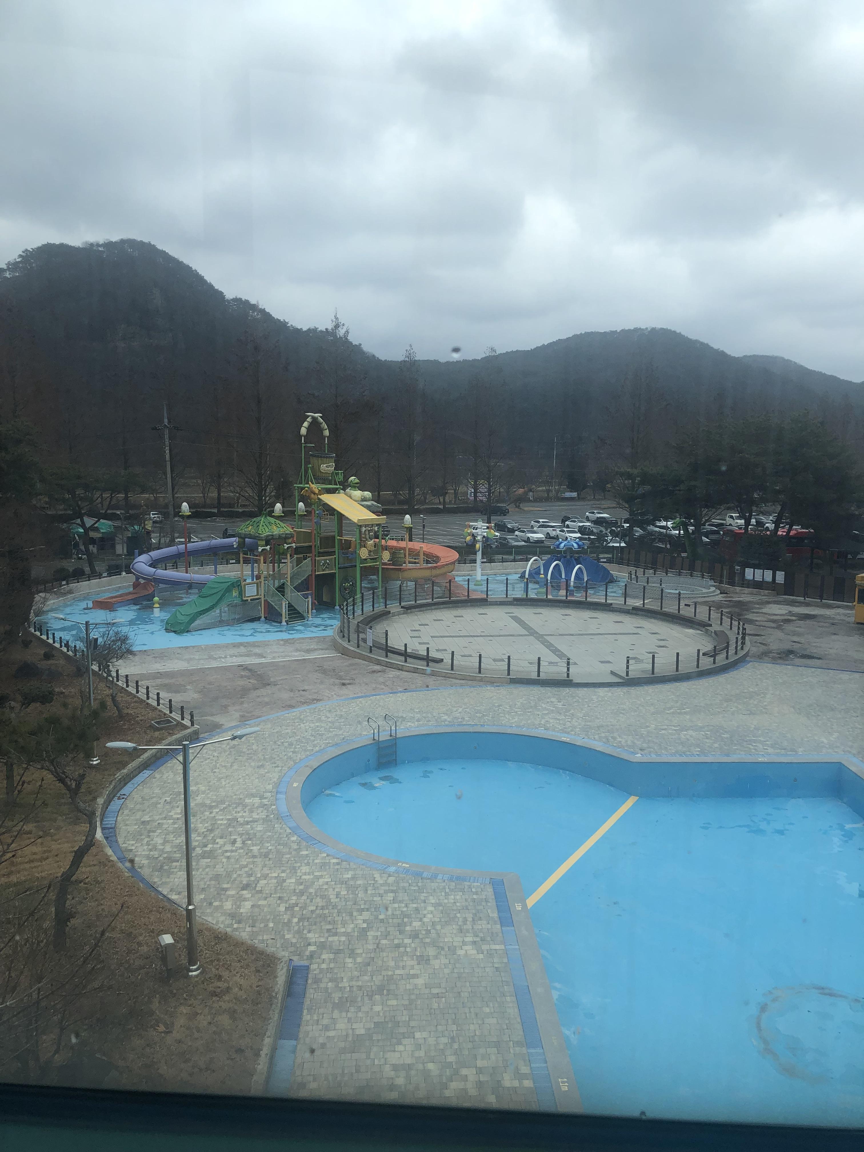 수영장 규모는 그리 크지는 않습니다. 그래도 미취학아동이 재미나게 놀거리들이 있습니다.