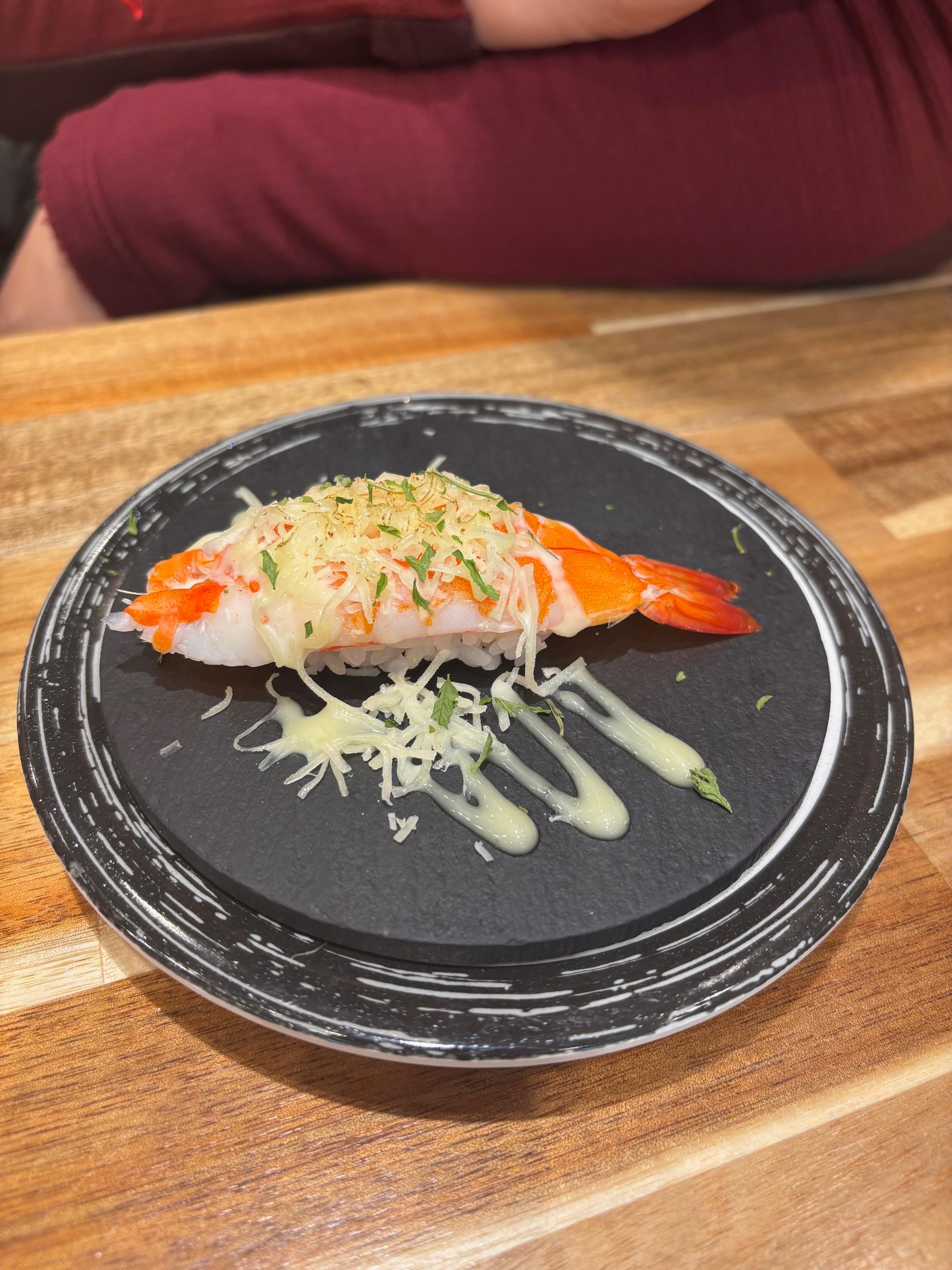- (순서대로) 참다랑어뱃살, 붉은왕새우, 양념새우, 육회묵은지군함