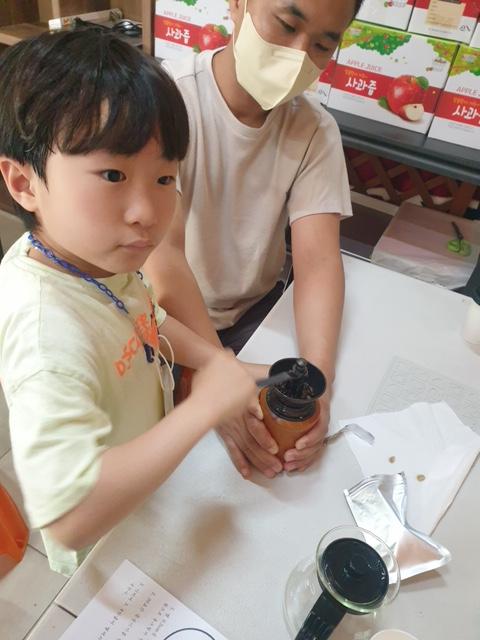 로스팅 과정이 200도에 달하는 굉장히 뜨거운 열로 하는 것이고, 커피 드립 또한 뜨거운 물로 내리는 것이기 때문에 미취학 아동이나 초등 저학년 아이에겐 조금 위험할 수 있습니다. 혼자 스스로 체험해보는 건 초등 고학년부터 추천드립니다.