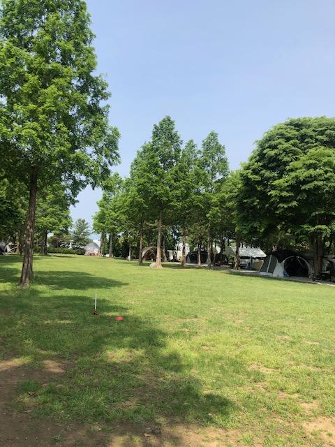 내부 풍경은 이렇습니다. 중앙에 넓은 잔디밭을 중심으로 양쪽에 나무들이 일렬로 심어져 있고, 텐트를 칠 수 있는 사이트는 파쇄석으로 되어 있습니다. 단독 데크 사이트가 있긴 한데 딱 한군데라 아마... 경쟁이 많이 치렬한 듯 하더라구요.