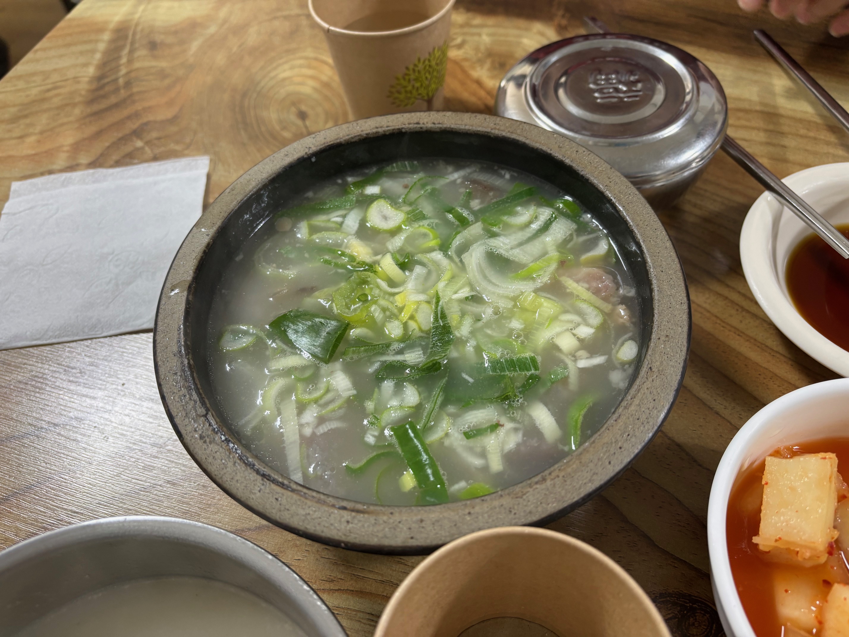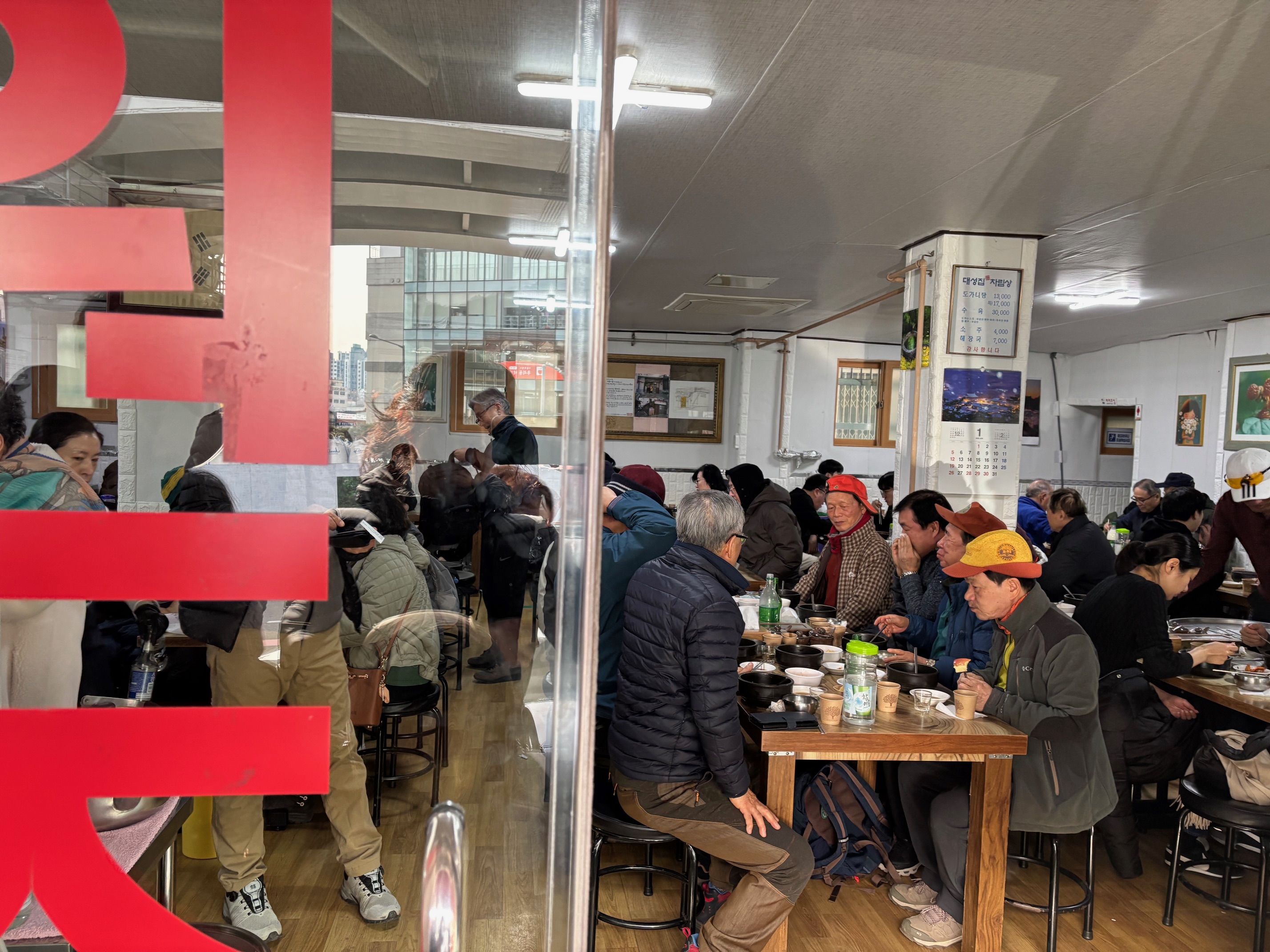사람들이 너무 많고 다들 바쁘셔서 내부사진은 제대로 찍질 못했어요... 생각보다 넓지만 테이블들이 다닥다닥 붙어있어서 두꺼운 외투를 입는 겨울엔 테이블 사이를 지나가기 조금 불편할 수 있는 간격입니다. 주로 연령대층은 어르신들이었는데, 젊은 커플들도 있었고 특히 부모님 따라 온 아이들은 의외로 도가니탕을 엄청 잘 먹더라구요~