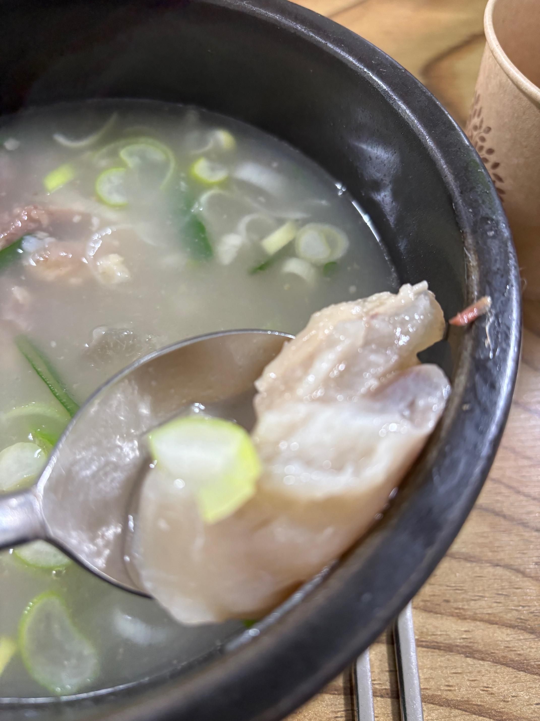곰국이나 곰탕과는 국물맛이 조금 달랐습니다. 좀 더 맑은 느낌?!! 깊고 진하면서 깔끔한 국물 맛이었습니다. 간장에 콕 찍어 먹어본 도가니는 탱글, 쫀득한 것이 넘나 맛있었어요!!
