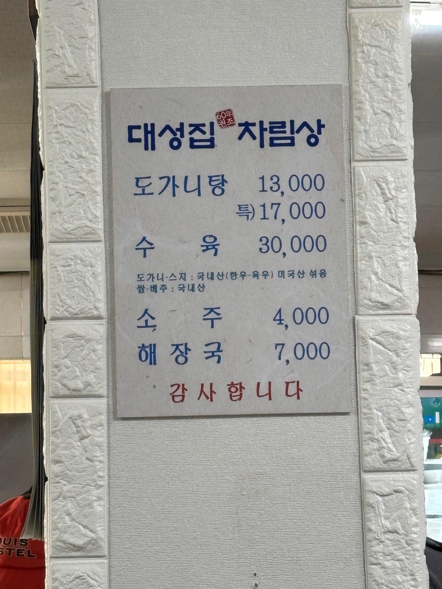 성시경의 먹을텐데에도 나왔었고 미슐렌 가이드 서울 2024에도 등재된 도가니탕 해장국 전문 대성집입니다.