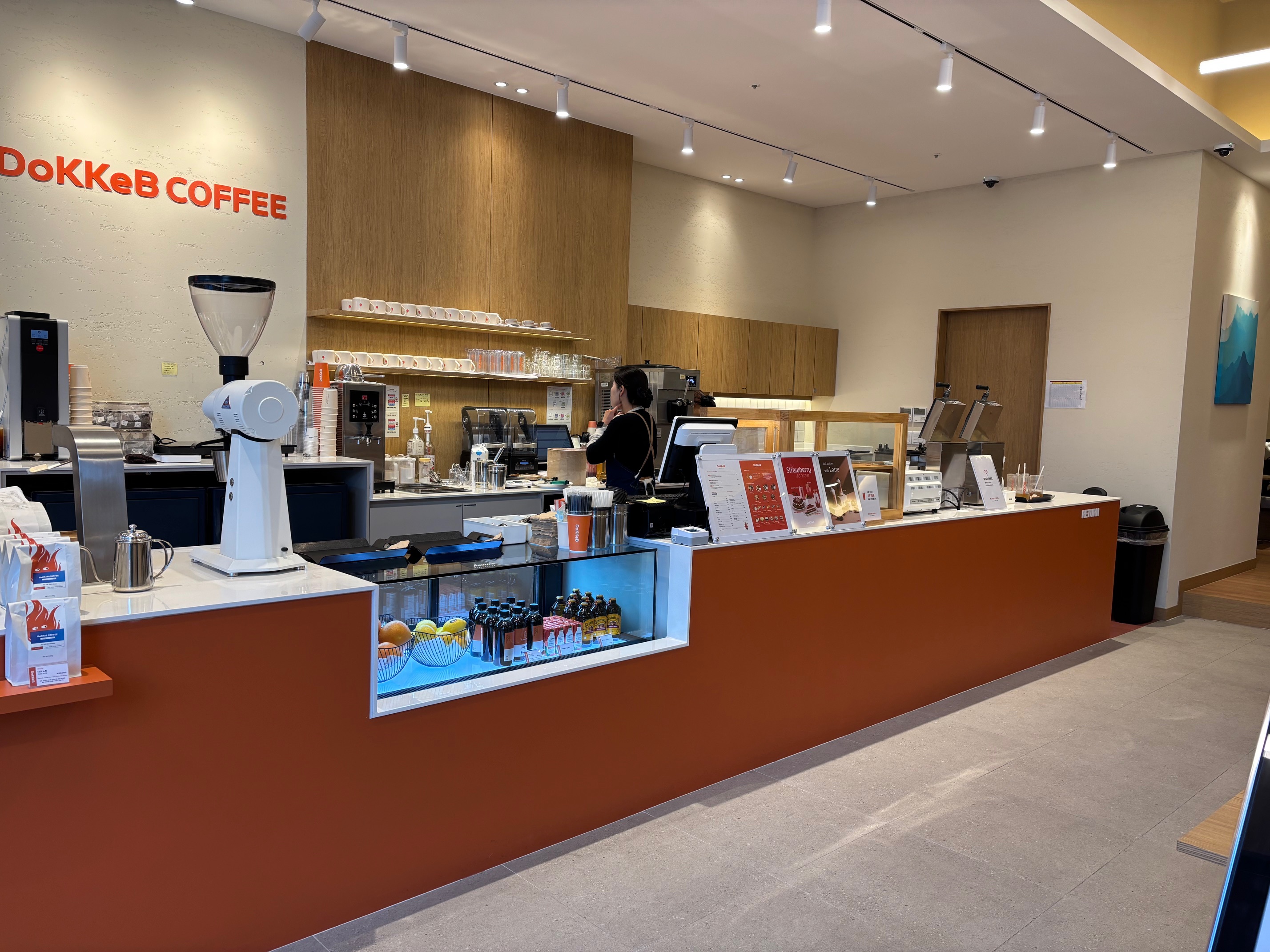 기존의 다른 도케비커피 지점들은 탁 트인 뷰를 느낄 수 있는 공간인데, 이곳 죽전점은 아파트 숲 사이의 상가에 위치해 있어 일반 카페와 외관이 비슷하여 도케비만의 메리트는 없습니다...