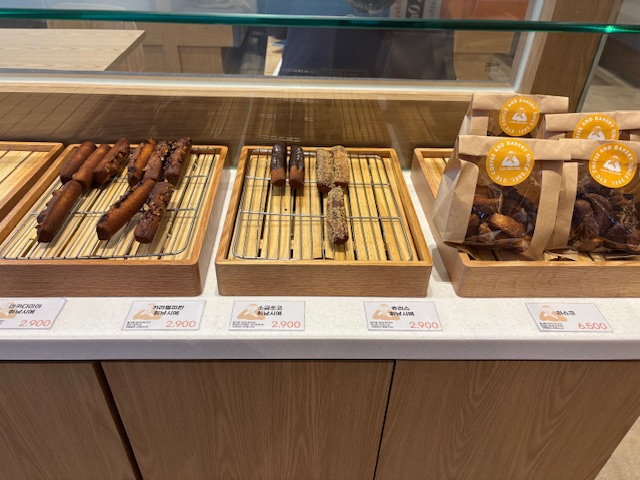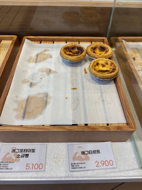 제가 갔을 때 남아있는 베이커리 종류는 사진처럼 소금빵 2종류, 휘낭시에, 에그타르트 정도였습니다. 더 다양한 소금빵을 맛보시려면 좀 이른 시간에 가셔야 할 것 같아요~