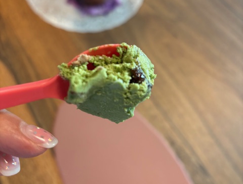 실제 비주얼은 녹차 아이스크림에 팥알이 간간이 박혀있는데, 먹어보면 보이지 않는 떡이 씹히면서 아주 맛나더라구요~ 그리고 녹차맛보다 쌉싸름함이 덜하고 더 부드러운 맛이었습니다. 녹차 맛이 강해 녹차아이스크림에 거부감이 든 사람들도 맛있게 먹을 수 있겠구나 느꼈습니다. 팥맛은 거의 나지 않습니다.