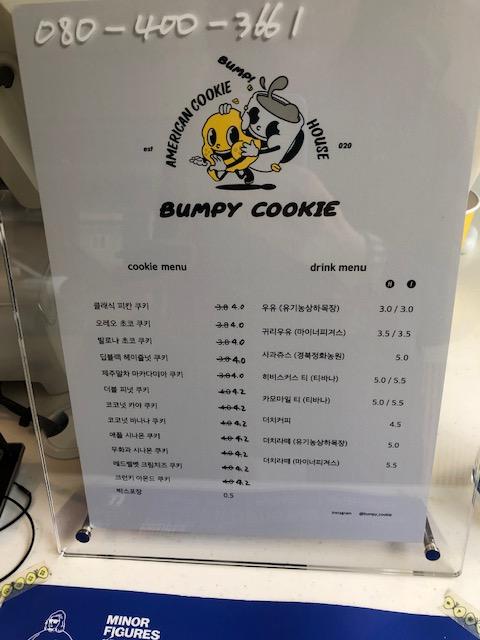 쿠키는 성인 여성 손바닥 크기이며, 요즘 유행하는 쿠키처럼 많이 두껍지는 않아요. 클래식 쿠키라 범피쿠키의 시그니처인 것 같았습니다. 사장님께서도 요 쿠키가 맛있다며 추천해주시더라구요~