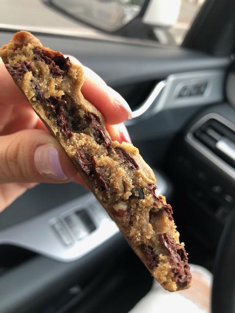 일단 쿠키가 부드럽고 쿠키 안에 들어있는 초코가 굉장히 진했습니다. 그리고 중간중간 씹히는 피칸 맛이 잘 어우러져 있었습니다. 가장 맘에 든 점은 다른 쿠키집들에 비해 달기가 적당했다는 점이예요. 요즘 워낙 자극적인 맛들이 유행하는지라 쿠키들도 엄청 달게 나오는데 범피쿠키는 달기가 적당해서 커피와 먹으면 딱 기분 좋을 맛이었습니다.