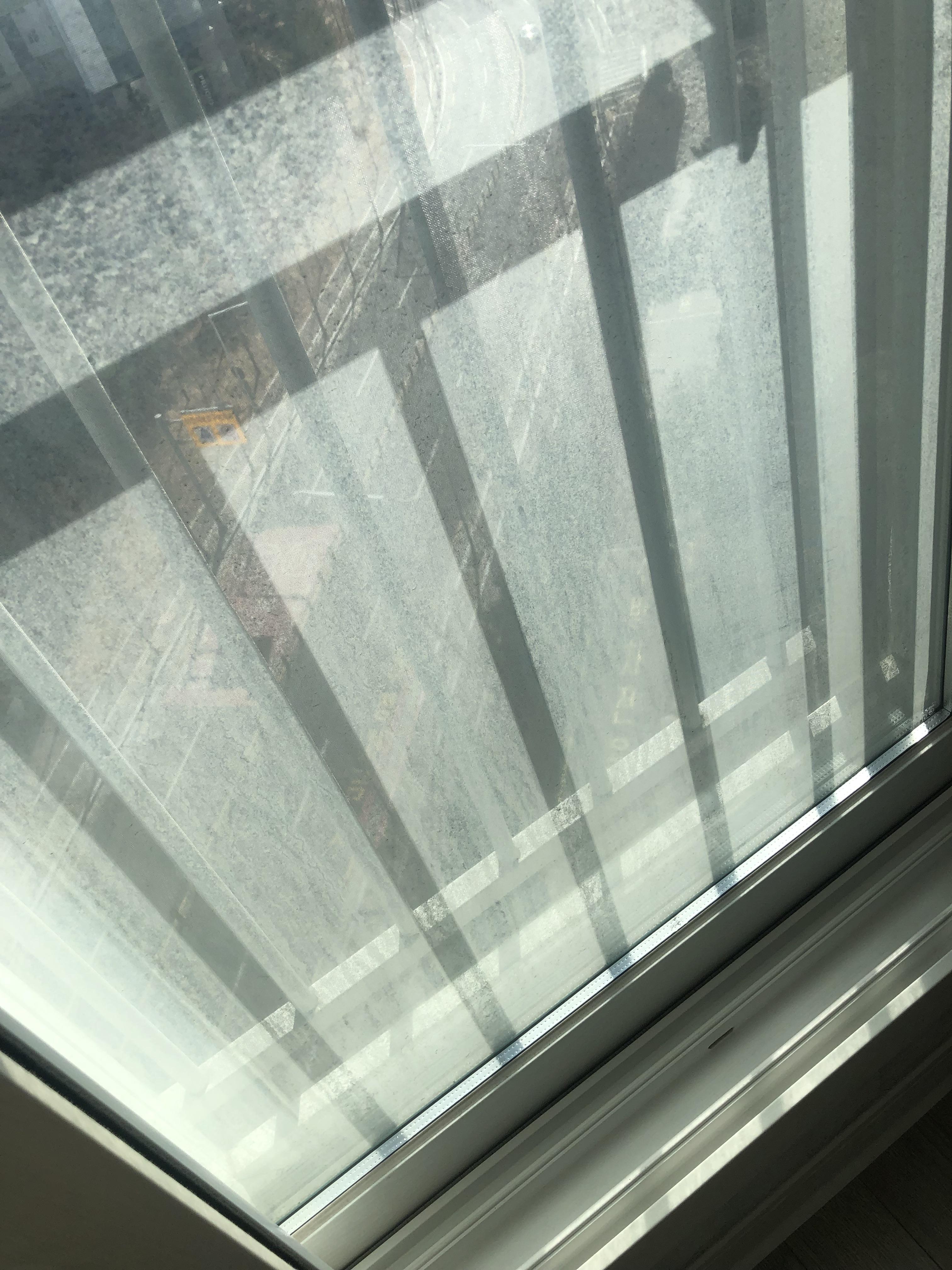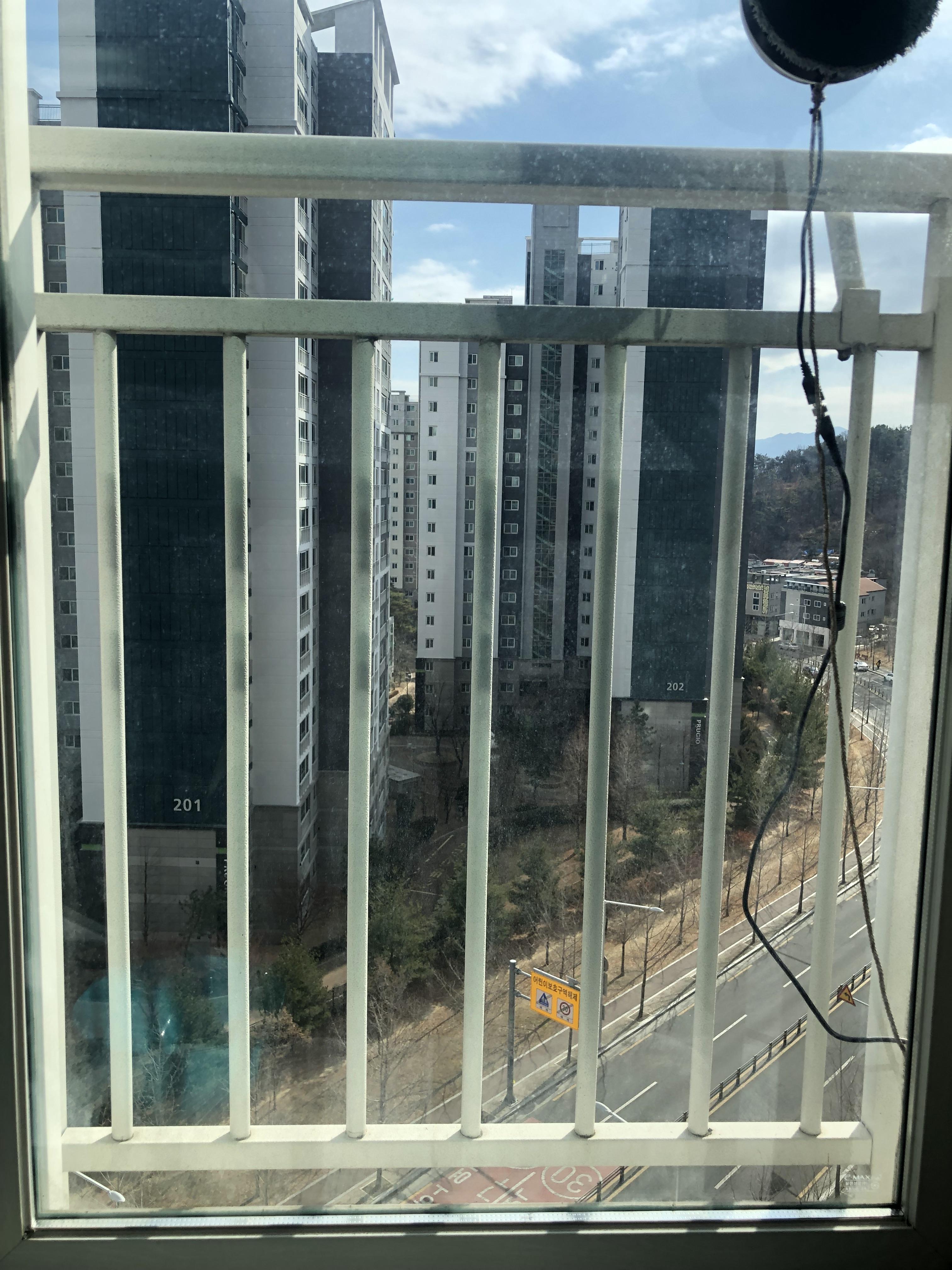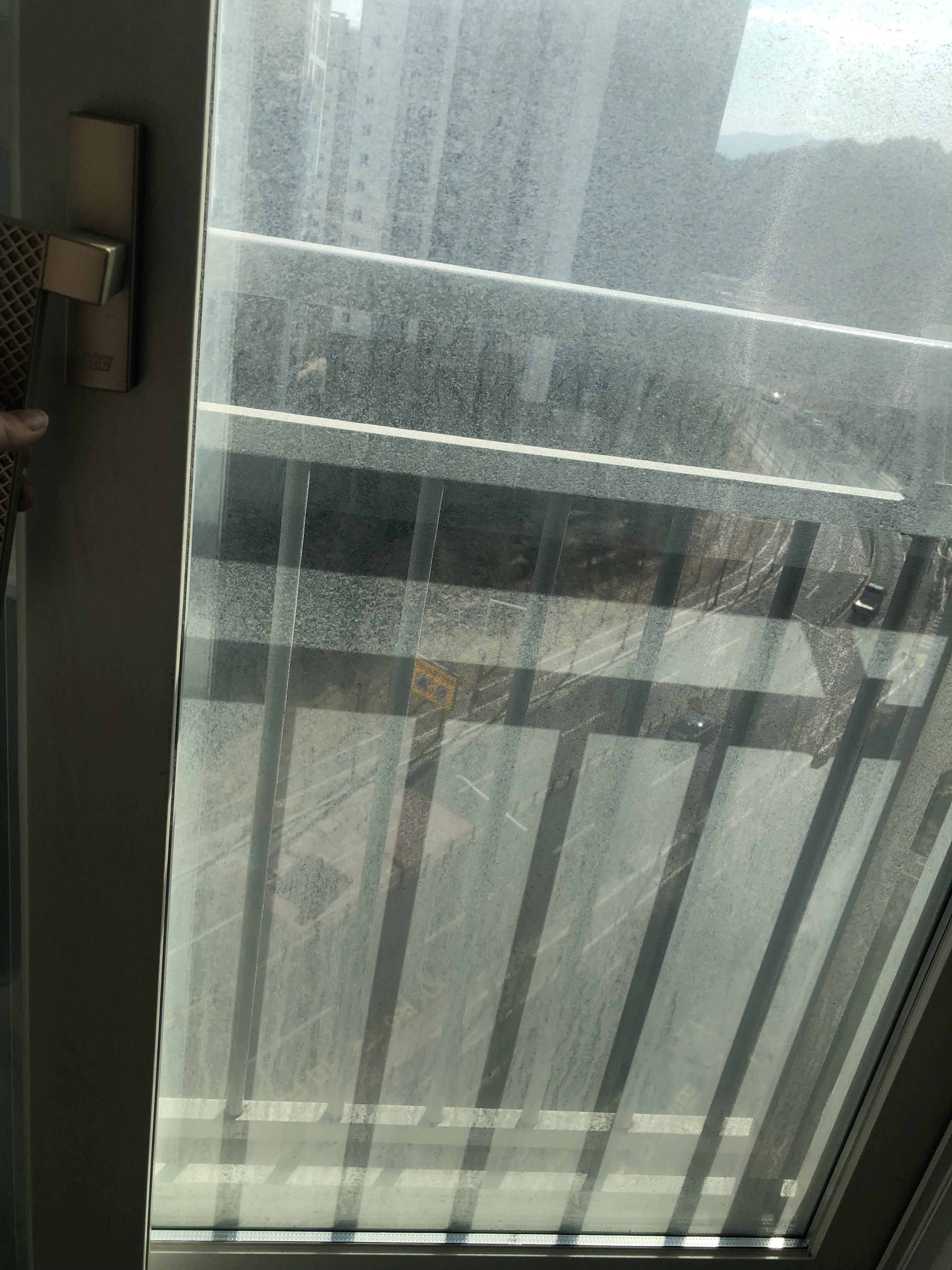 다양한 먼지와 산성비 등등에 의해 누렇게 더러워진 거실 창의 모습입니다. 빛 때문에 역광이라 사진에 선명하게 나타나지 않은게 이 정도라... 부끄럽습니다... ㅎㅎ