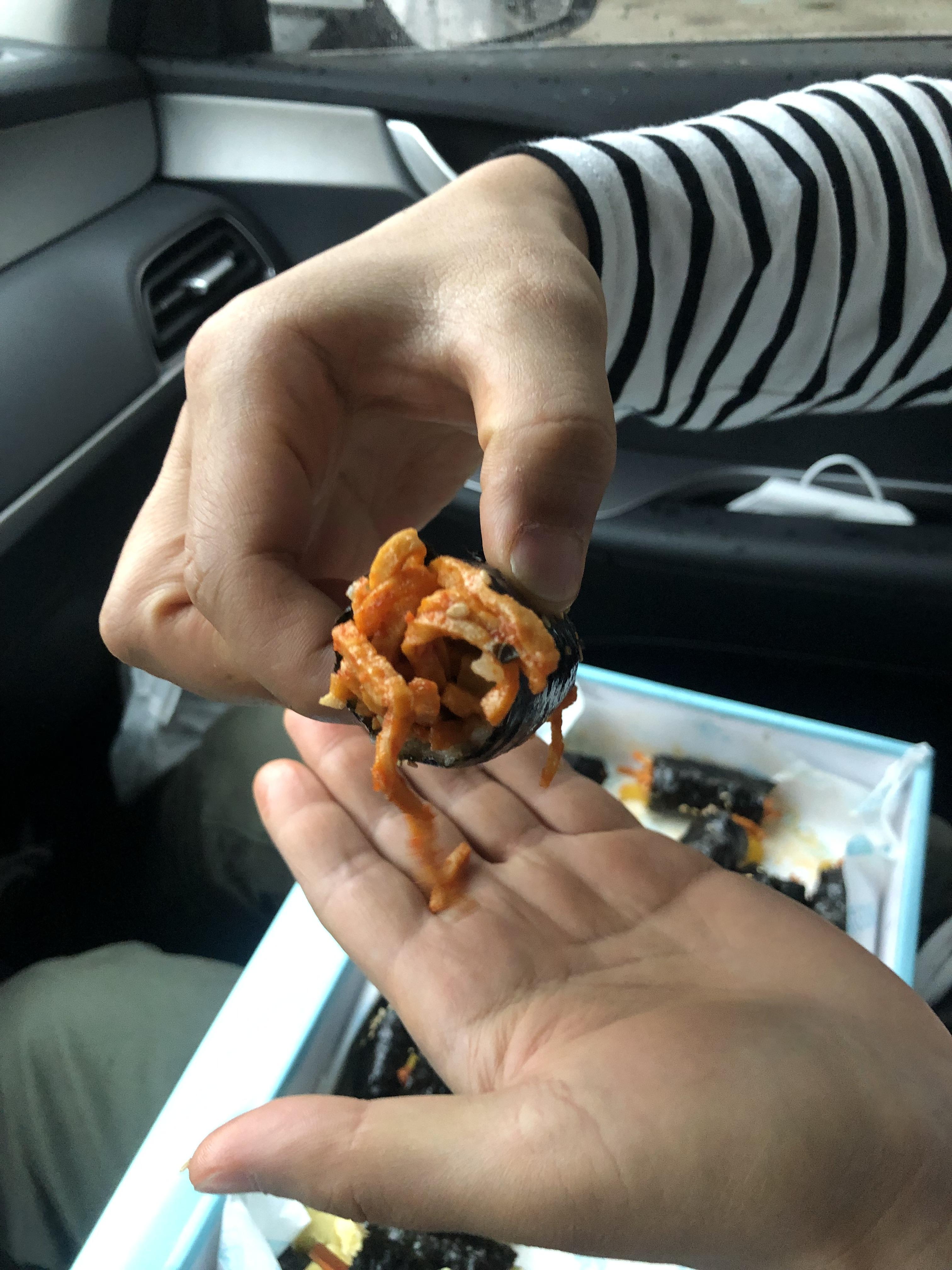 바다김밥은 맵던 안 맵던 전체적으로 자극적인 맛이었습니다. 짠 맛도 강했습니다. (제가 워낙 싱겁게 먹어서 더 그렇게 느꼈을 수 있습니다요~~) 그래서 그런 지 또 생각나는 김밥이었습니다. 신랑과 아이도 너무나 맛있게 먹은 바다김밥이었습니다.