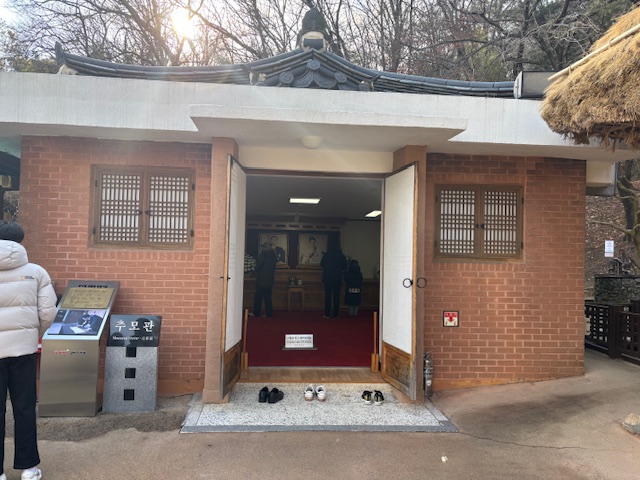 감나무 뒤쪽으로 박정희 전대통령의 추모관이 있습니다. 신발을 벗고 들어가실 수 있습니다.