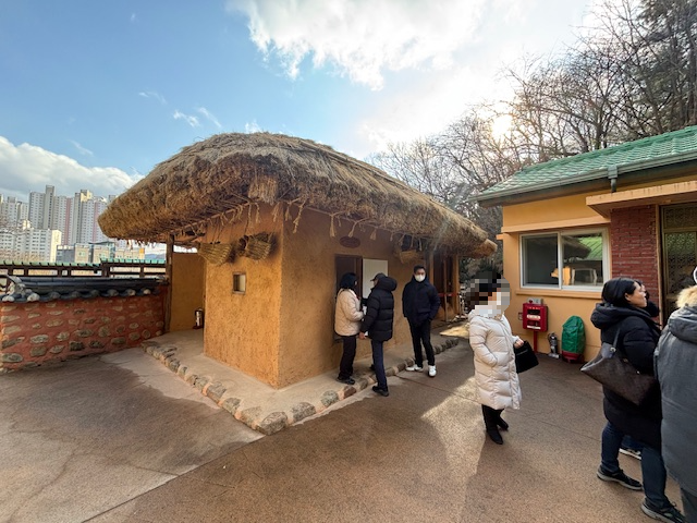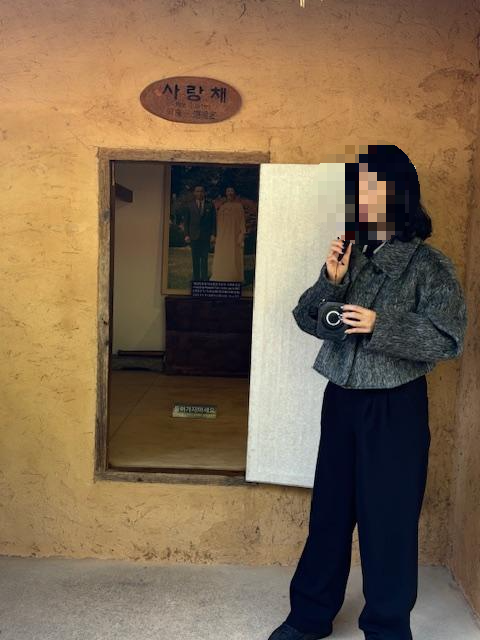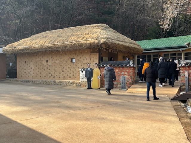 가장 앞쪽 초가집 곁에 대통령 내외 입간판이 있는데 방문객들이 포토존으로 이용하며 기념사진을 찍을 수 있습니다. 저희가 방문한 날, 저희 말고도 많은 방문객들이 계시더라구요~ 평일, 주말 할 것 없이 늘 방문객들이 끊이지 않는다고 합니다.