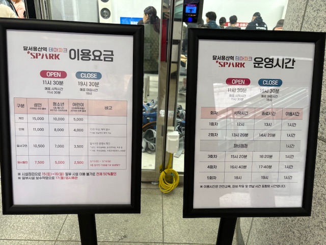 유료로 전환한 첫날이라 그런 지, 주말임에도 사람들이 그닥 많지 않았습니다. 3번 출구쪽으로 나오시면 요렇게 티켓 키오스크가 보이고 바로 앞쪽에 안전교육장이 보입니다. 여기에서 대면으로 티켓구입도 가능합니다. 또한 온라인으로도 미리 구매 가능하니 참고하세요~