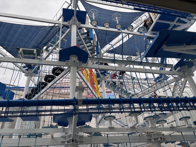 2~4층은 시작 순서는 원하는 층부터 하셔도 됩니다. 몸의 안전장치와 연결된 로프가 좀 빡빡해서 아이가 스스로 당기기는 조금 힘들어하더라구요~ 그래서 140 미만인 어린이들은 보호자가 꼭 동반해야 합니다. 층마다 다양한 챌린지로 구성되어 있습니다. 그리고 마지막은 4층에서 번지점프로 1층까지 순간이동!!