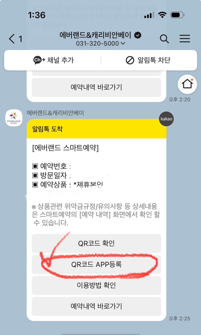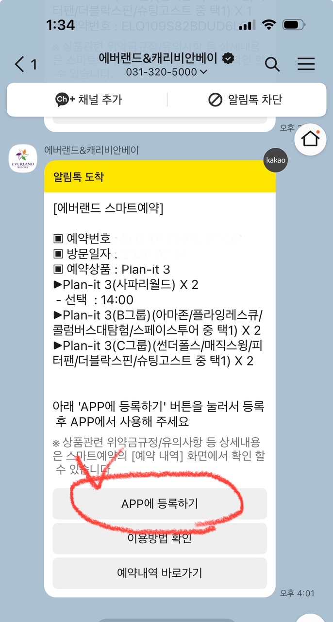모든 구매가 끝났다면 카톡으로 에버랜드 메세지가 옵니다.