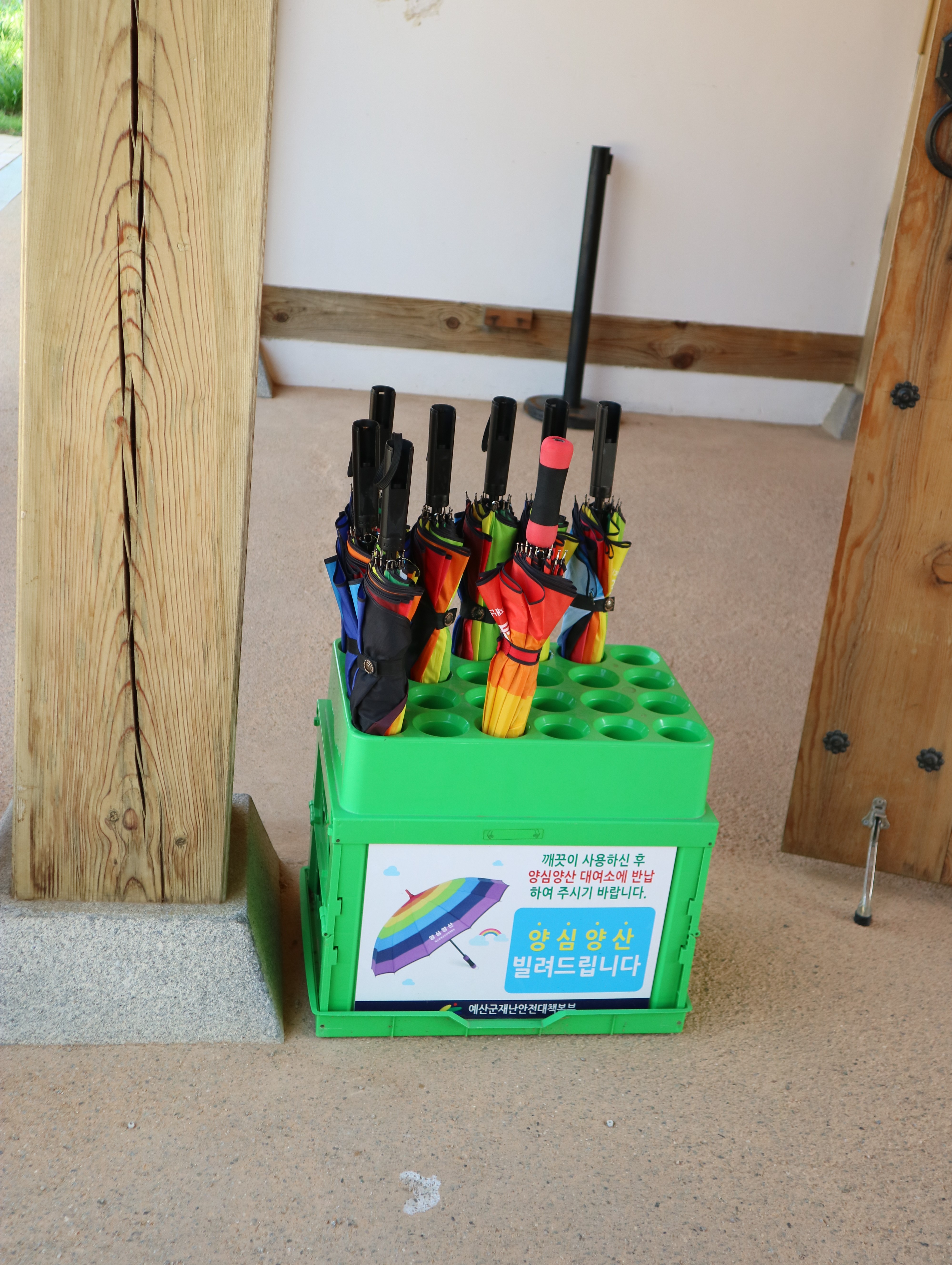 입구를 들어서자마자 양쪽으로 양심우산이 배치되어 있습니다. 이제 날씨가 무더워지면서 이 양심우산 쟁탈전도 만만치 않았습니다. 거진 야외에서 돌아다녀야 하니 꼭 우산 하나씩은 챙기세요!