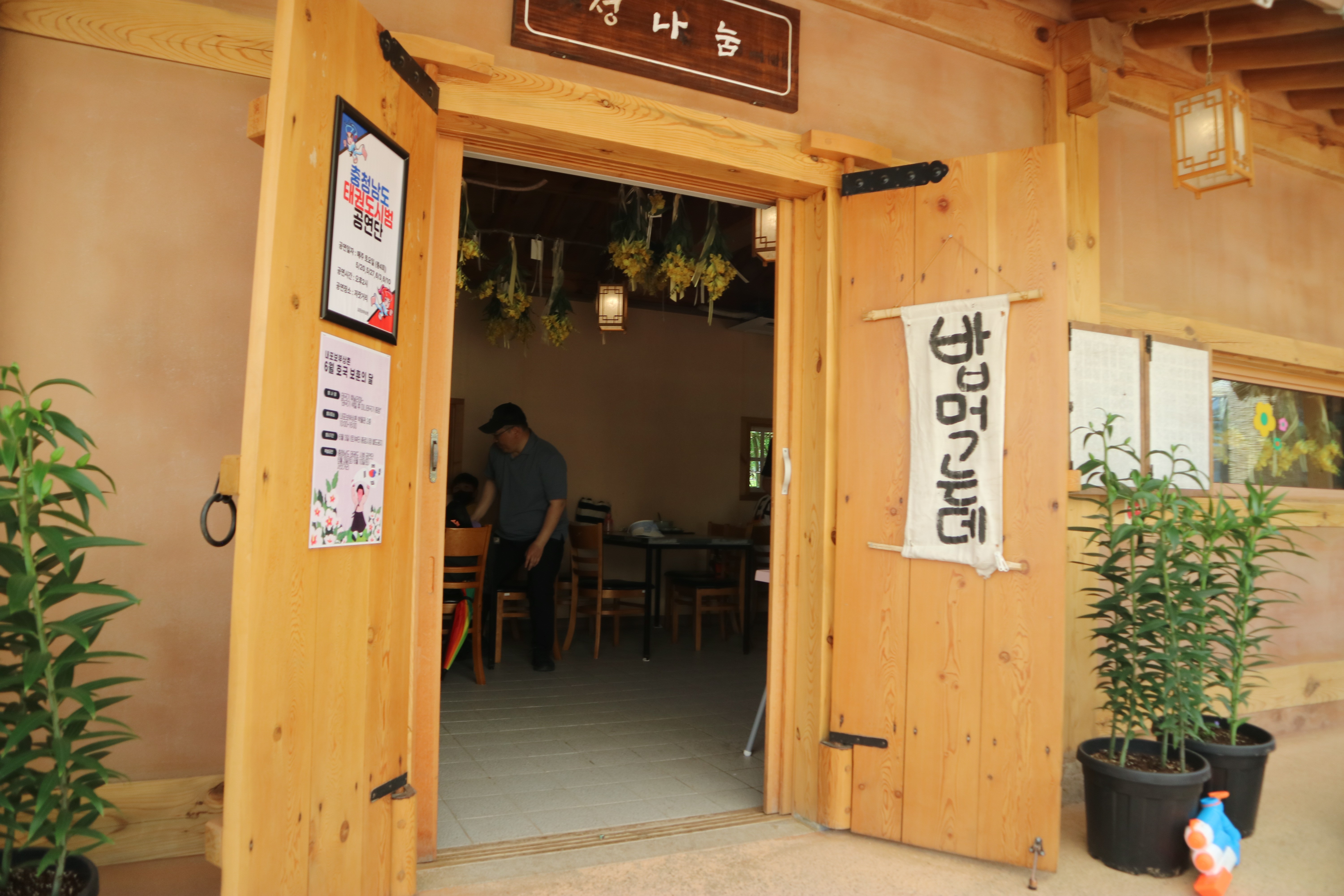 저잣거리 중앙에는 앉아서 음식을 먹을 수 있는 테이블이 있습니다. 그러나 사람들이 많이 몰리는 점심시간에는 자리잡기가 너무나 어려워요... 덥기도 하고... 음식을 파는 곳 옆으로 사진처럼 '밥먹는데'라는 간판이 달린 곳이 몇군데 있습니다. 여긴 실내 테이블이 있는 곳인데요~ 더운 여름날 에어컨도 빵빵하게 나오고 그늘도 지는 여기를 전 강추!합니다.