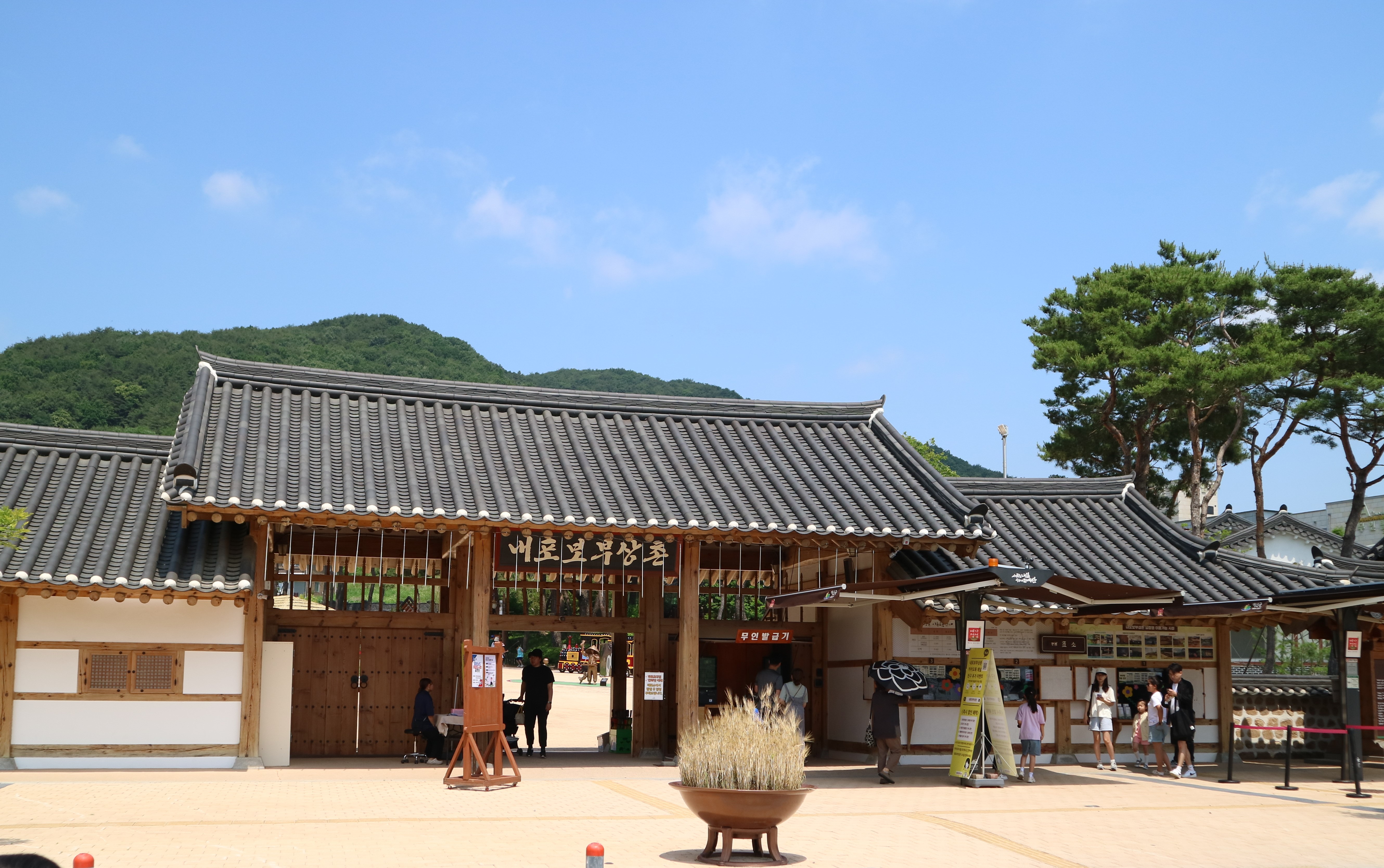 앞 광장에는 보부상이 무엇인지 보자마자 알 수 있는 조각상(사진에는 없지만... ^^;;)들이 있고 왼쪽으로는 분수, 오른쪽으로는 열차를 타는 정류장이 있습니다. 열차는 영유아 가족들이 주로 이용했습니다. 저희도 아이가 더 어릴 때 이런 열차를 많이 애용했기 때문에 이제는 패스~~
