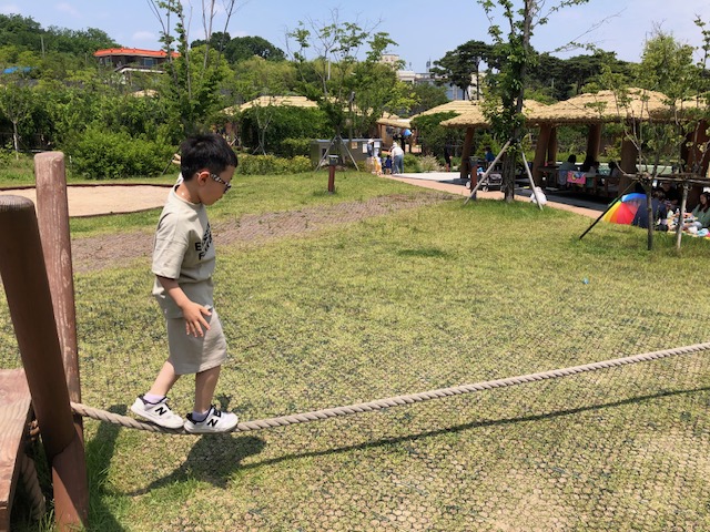 슬라이드 바로 옆에 있는 놀이터입니다. 요기에 짚라인도 조성되어 있는데 5~12세까지 이용 가능한 어린이 놀이시설로 키 100cm 이상의 아이들부터 이용할 수 있습니다.