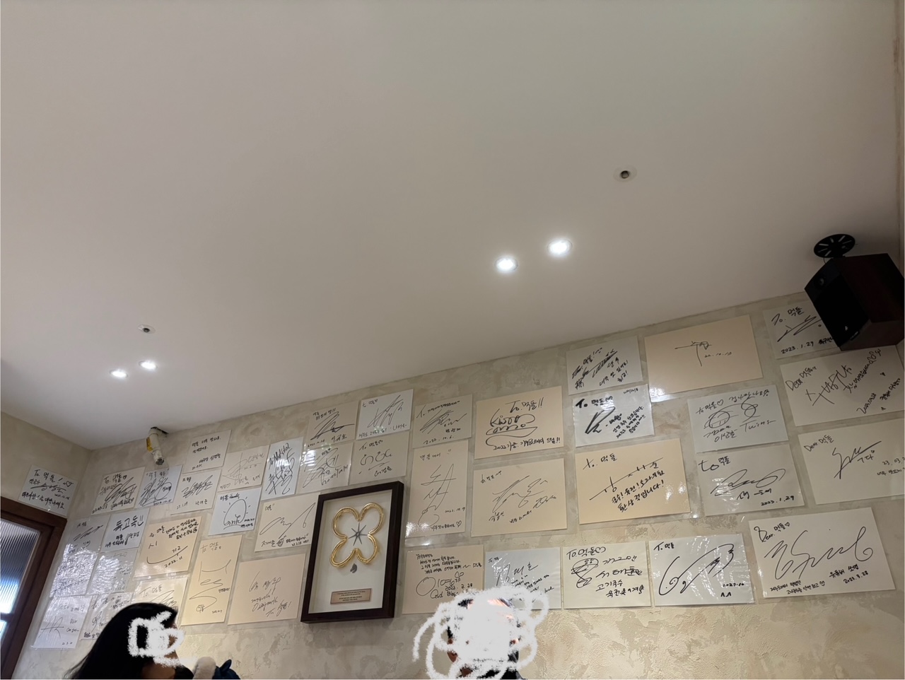 온라인 줄서기를 하지 않으셨다면 대기실 앞에 있는 키오스크에서 대기등록을 하시면 됩니다. 대기실 한쪽 벽면에는 이곳을 다녀간 유명인사들의 사인이 쫘악~ 붙어있습니다. 대가족, 친구들, 연인 등등 대기실이 부쩍부쩍였습니다.