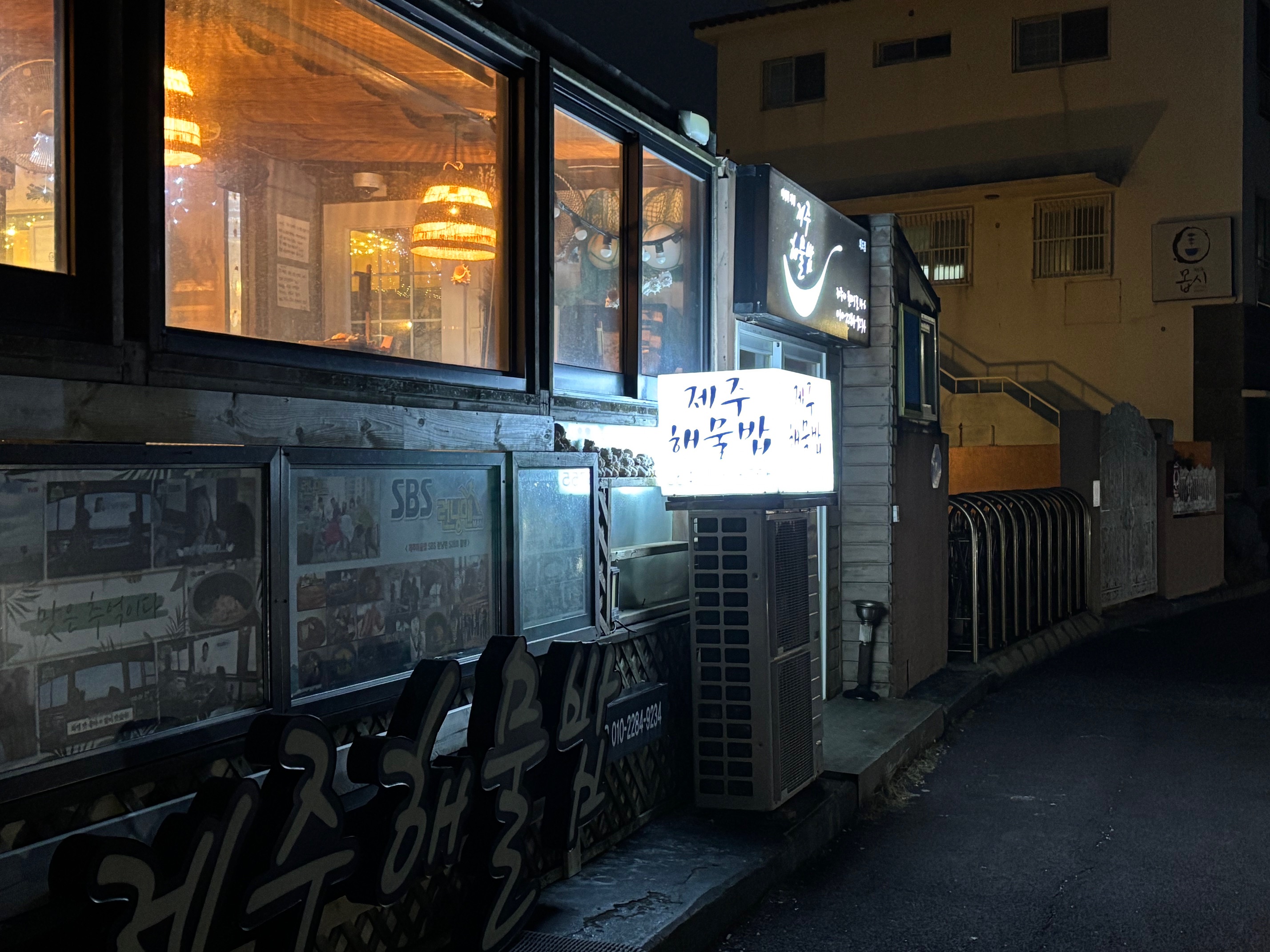 바다 바로 앞에 위치한 식당이라 바다뷰를 보면서 식사를 할 수 있는 곳입니다. 밤이라 바다가 안 보이는 것이 아쉽네요... ㅠㅠ 사진에도 보이다시피 이미 TV 프로그램 다수 방영 되었다고 해서 좀 더 알려진 집이 아닐까 생각이 됩니다.