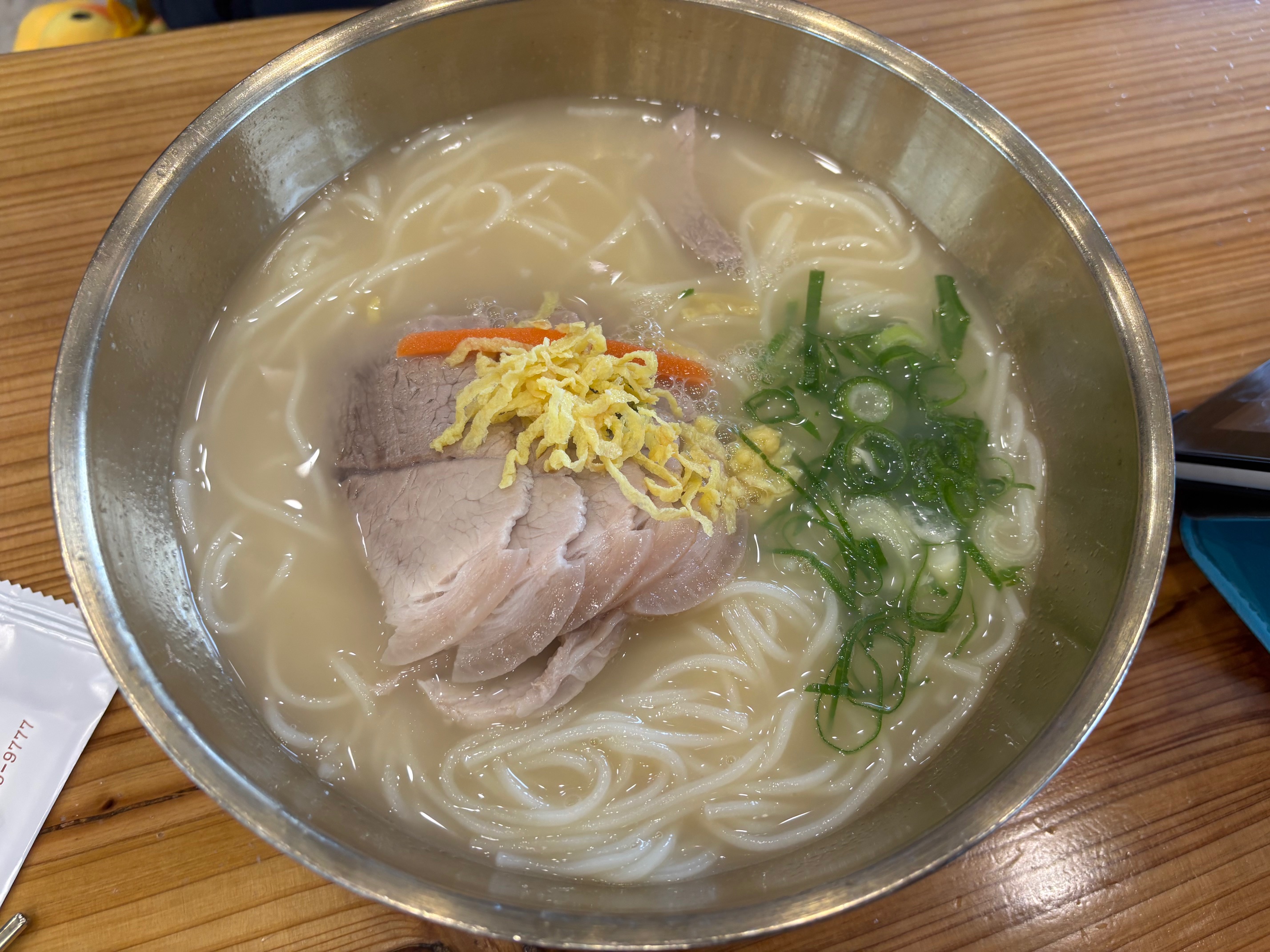 면은 중면입니다. 일단 고기국수의 국물은 담백할 것 같았지만 담백하면서도 고기 특유의 기름맛이 베여있었습니다. 그렇다고 먹고나면 입술이 쫙쫙 붙는 그런 느낌은 아닙니다. 곰국의 맛과는 또다른 맛입니다. 고명으로 올려진 고기는 기름기 없는 담백한 고기였습니다. 그래서 더욱 맘에 들었고, 매운 김치와 잘 어울렸습니다.
