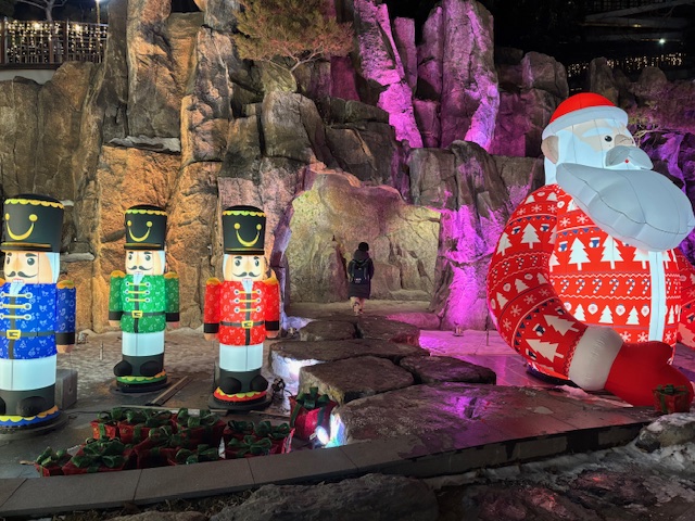 겨울정원 자체가 크진 않지만 여기저기 포토존이 많아서 예쁜 사진을 많이 찍을 수 있습니다. 큰 대형산타와 병정들 사이로 인공동굴이 있는데, 들어갔다가 나올 수 있도록 꾸며져 있어요~ 길지 않지만 아이가 재미있어했어요~ ㅎㅎ