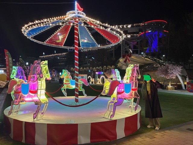 화려한 조명으로 꾸며진 대형트리도 있고, 알록달록한 조명으로 꾸민 제일 눈에 띄는 회전목마도 있습니다. 완전 포토존이예요~~~ 크고 작은 조형물들이 조화로워 어디에서 사진을 찍어도 넘나 예쁘게 나옵니다.