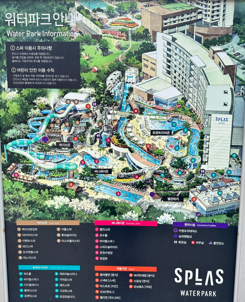 가운데 메인 건물을 기준으로 양쪽으로 다양한 노천스파가 있습니다. 여러분들은 골드시즌이 되기 전 계획을 잘 짜셔서 즐거운 워터파크 여행이 되셨으면 좋겠습니다.