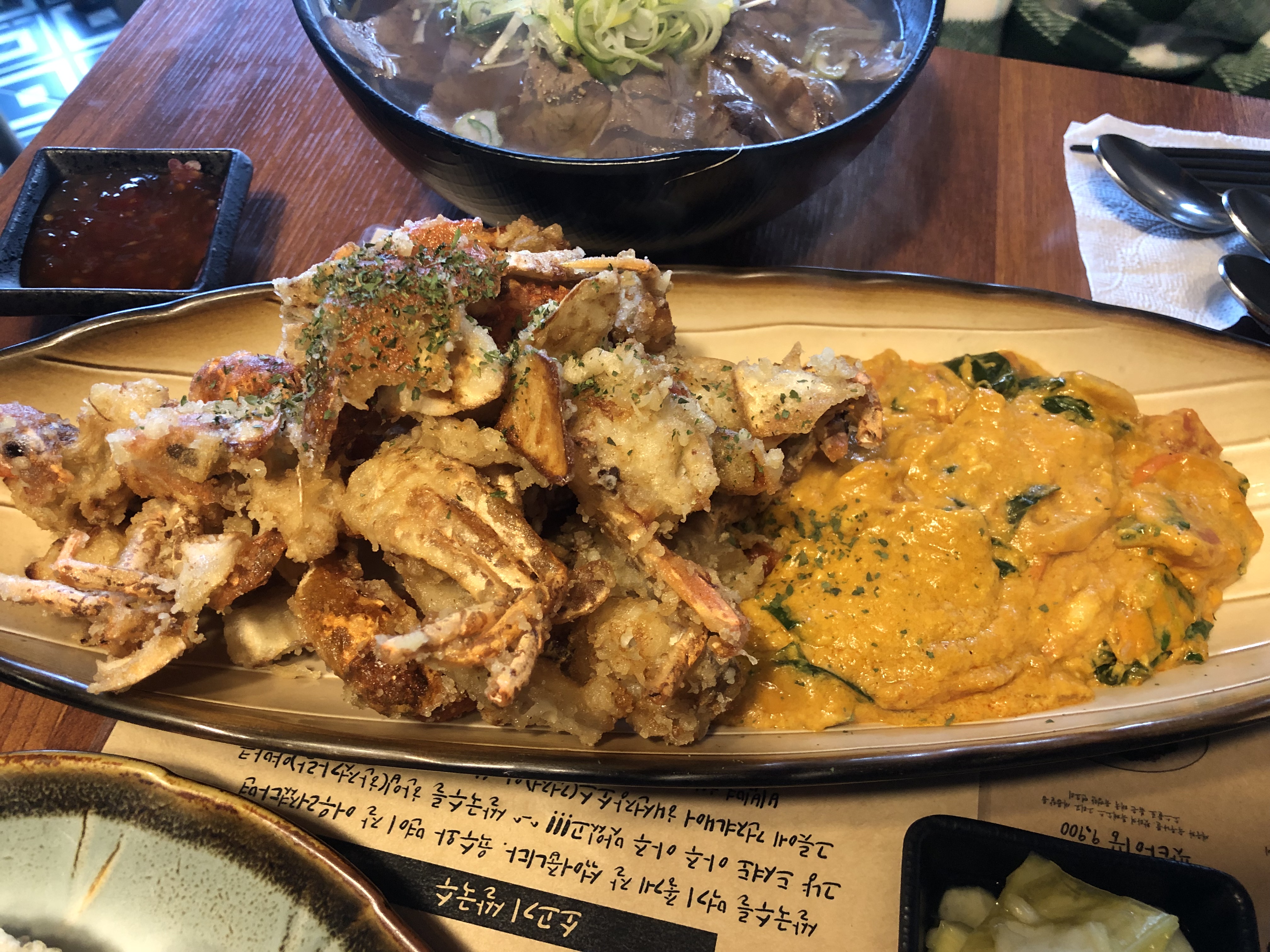 음식 시키기 전 매움에 대해 걱정을 해서 그런지, 아니면 원래 이렇게 서빙되는 것이지 몰라도 커리와 크랩을 버무리지 않고 따로 주셨습니다. 그 덕분에 매운 것을 1도 먹지 못하는 3호 맴버가 크랩을 아주 맛있게 먹을 수 있었습니다.
