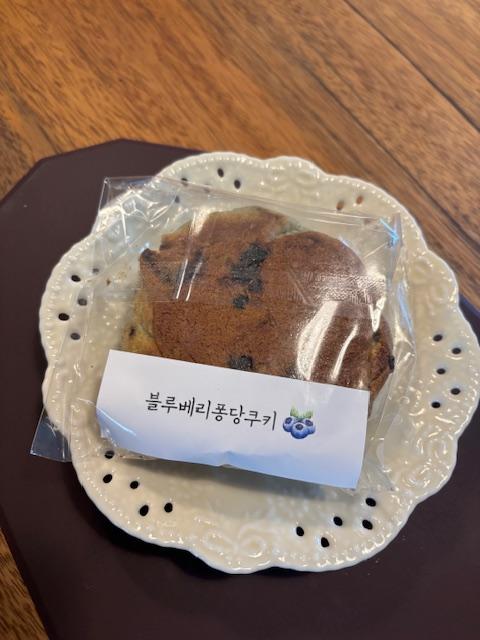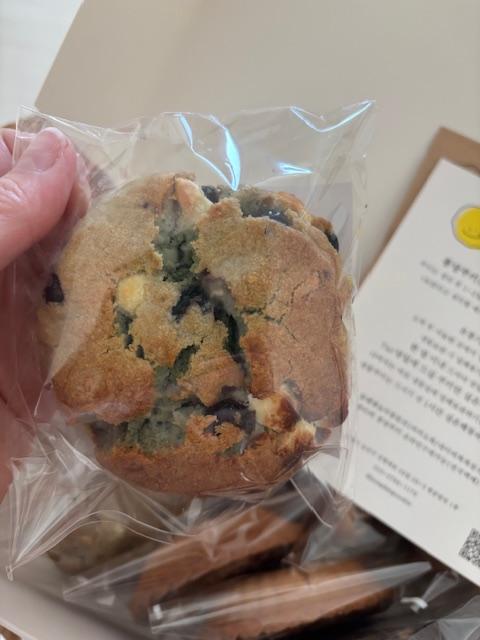 마지막으로 블루베리쿠키입니다. 블루베리가 콕콕 박혀 있는 것이 보이시죵? 요건 상온 상태의 쿠키가 더 맛난 것 같아요~ 블루베리를 좋아하는 저희 아이가 참 맛나게 먹더라구요~ 블루베리가 씹힐때마다 상콤한 맛이 나서 더 맛났습니다. 다음에도 재주문 리스트에 있을 아이입니다. ^^