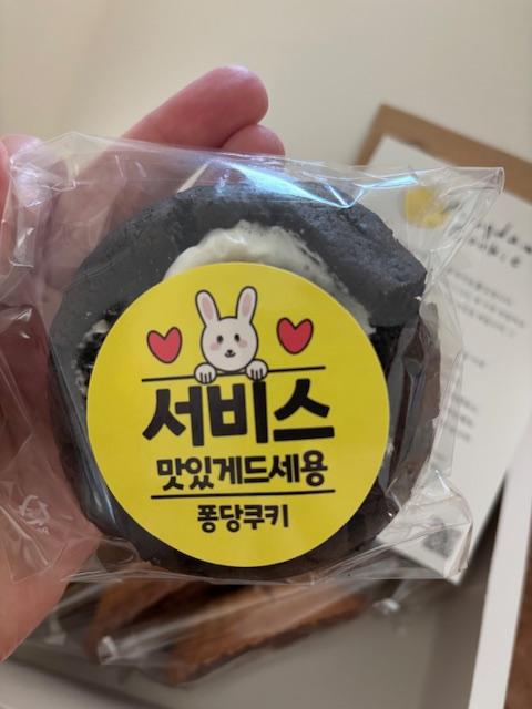 고소하면서도 달지 않고, 은은한 흑임자의 맛이 입 안을 감쌉니다. 단 것을 싫어해서 쿠키 종류를 먹지 않는 제 짝꿍도 요건 너무 맛있다며 잘 먹더라구요~ 아쉽게도 전 몇 입 못 먹었습니다... 네... 제 짝꿍이 거진 다 먹었어요... 한개만 주문한 걸 후회 ㅠㅠㅠ