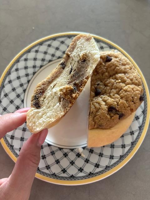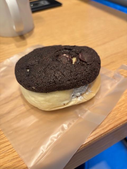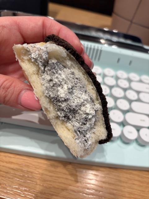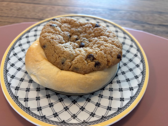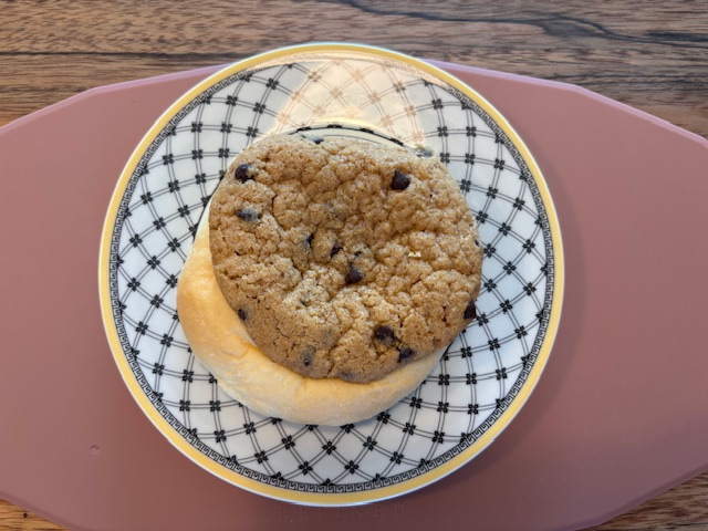 빵 위에 쿠키 도우가 올라가기 때문에 쿠키 자체는 바삭하진 않아요. 크림빵과 쿠키의 조합이 색다르면서도 조화로웠습니다. 전 얼렸다가 살짝 해동된 상태에서 먹어봤는데, 빵피는 쫀득한 편이고 안의 크림이 아이스크림처럼 시원했고, 느끼하지 않았습니다. 또한 지나치게 달지도 않아 커피와 잘 어울리는 쿠림빵이었어요~