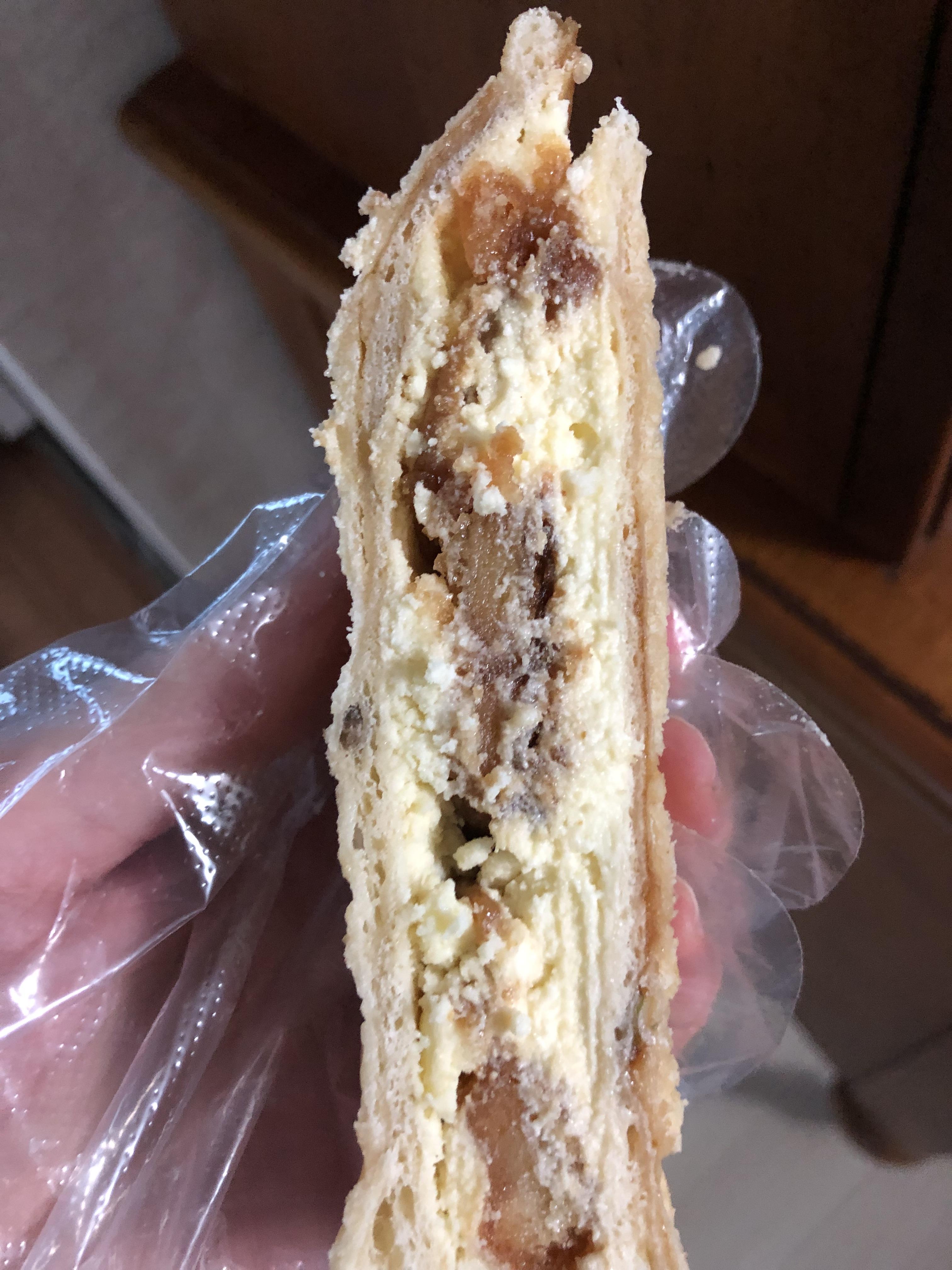약과맘모스는 버터 사이에 약과가 박혀있습니다. 버터에서 약과의 맛이 나진 않습니다. 오히려 약과 없는 부분을 먹으면 소보루의 땅콩맛이 많이 나는 편입니다. 하지만 약과가 씹히는 부분은 식감이 빠작빠작하니 약과 맛이 충분히 났습니다.