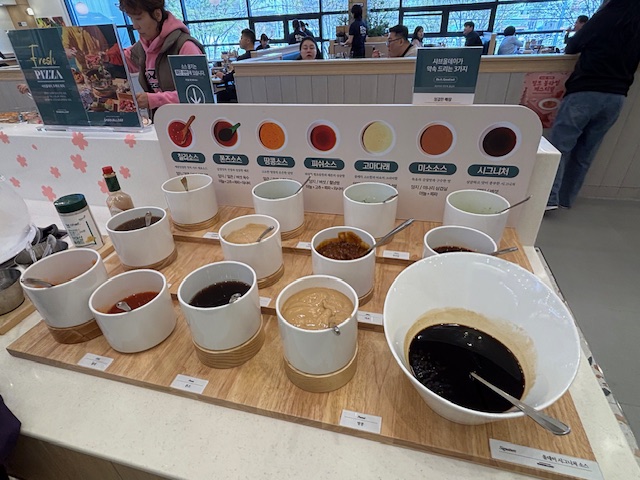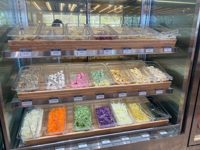 젤리, 샐러드 야채들, 소스 등도 있습니다.