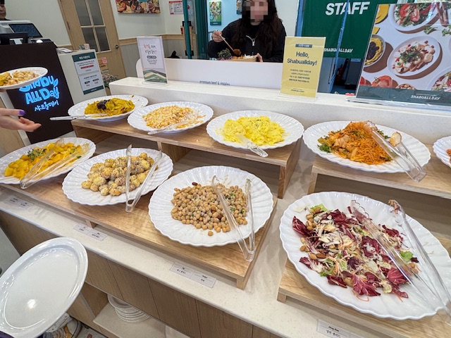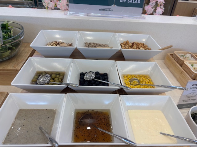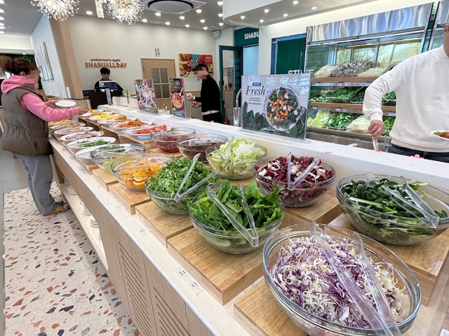 뷔페바의 음식들은 샤브올데이의 "호텔식"이라는 문구에 어울리는 퀄러티는 아닙니다. 그냥.. 일반 샤브샤브 가게에서 제공되는 음식들 수준이었어요~ 요즘 샤브샤브 가게들은 기본적으로 뷔페식이잖아요~ 전 "호텔식"이라고 해서 뷔페바의 음식들을 좀 기대했었는데.. 정말 기대 이하였습니다. 그래서 전 뷔페바의 음식들은 거의 먹지 않고 샤브샤브만 먹었어요~