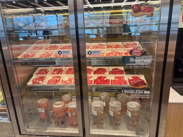 첫번째 사진이 기본 세팅이예요~ 고기는 3가지 종류입니다. 양지, 설도, 목심의 품질 좋은 소고기를 무제한으로 이용 가능합니다. 그런데... 전 솔직히 기름끼 많은 부위는 고기 냄새도 많이 나고 별로더라구요... 저희 아이도 그 부위를 먹자마자 "엄마~ 이 고기는 맛없어.."라고 했습니다... ㅠㅠ