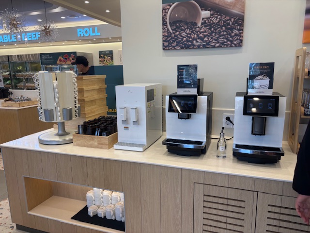 옆에 각종 차들과 (6가지 종류쯤 되는 것 같았어요~) 커피머신, 물을 마실 수 있는 정수기가 비치되어 있습니다. 식사 끝나신 뒤, 소프트아이스크림에 에스프레소를 넣어 아포카토 만들어 먹으면 완전 끝!! ^^