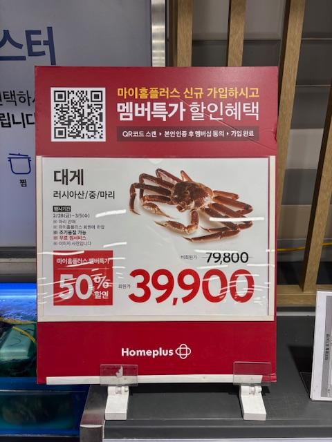사실 이런 행사는 광고만 그럴싸하게 하고 막상 가보면 그 가격이 아니거나, 늘 할인행사하는 상품이거나 품절이거나.. 그래서 전 이런 행사에 별 관심없는 1인인데, 대게가 39,900원이라굽쇼?!!!!