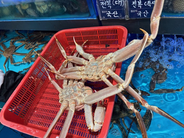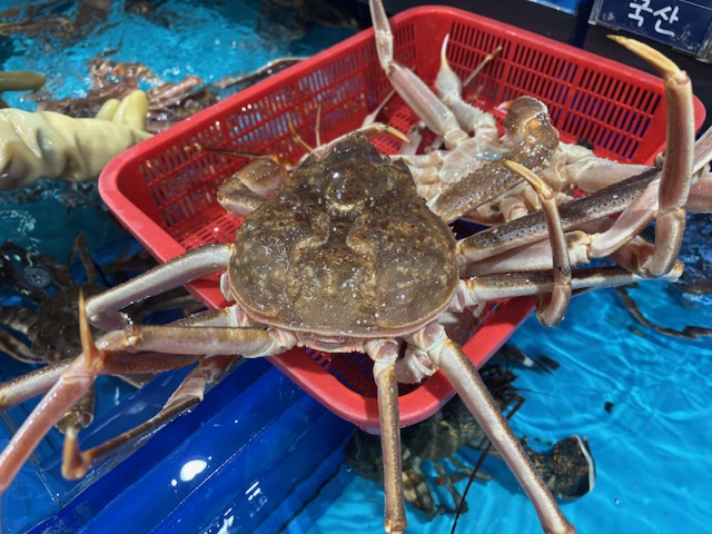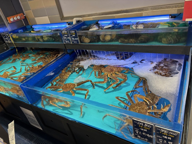 수조에 대게가 많지는 않았지만 다들 살아서 열심히 헤엄(?)치고 있었습니다. 하지만 저렴한 가격에 비해 대게를 구입하려는 손님들이 별로 보이지 않아 구입하기가 망설여지더군요...