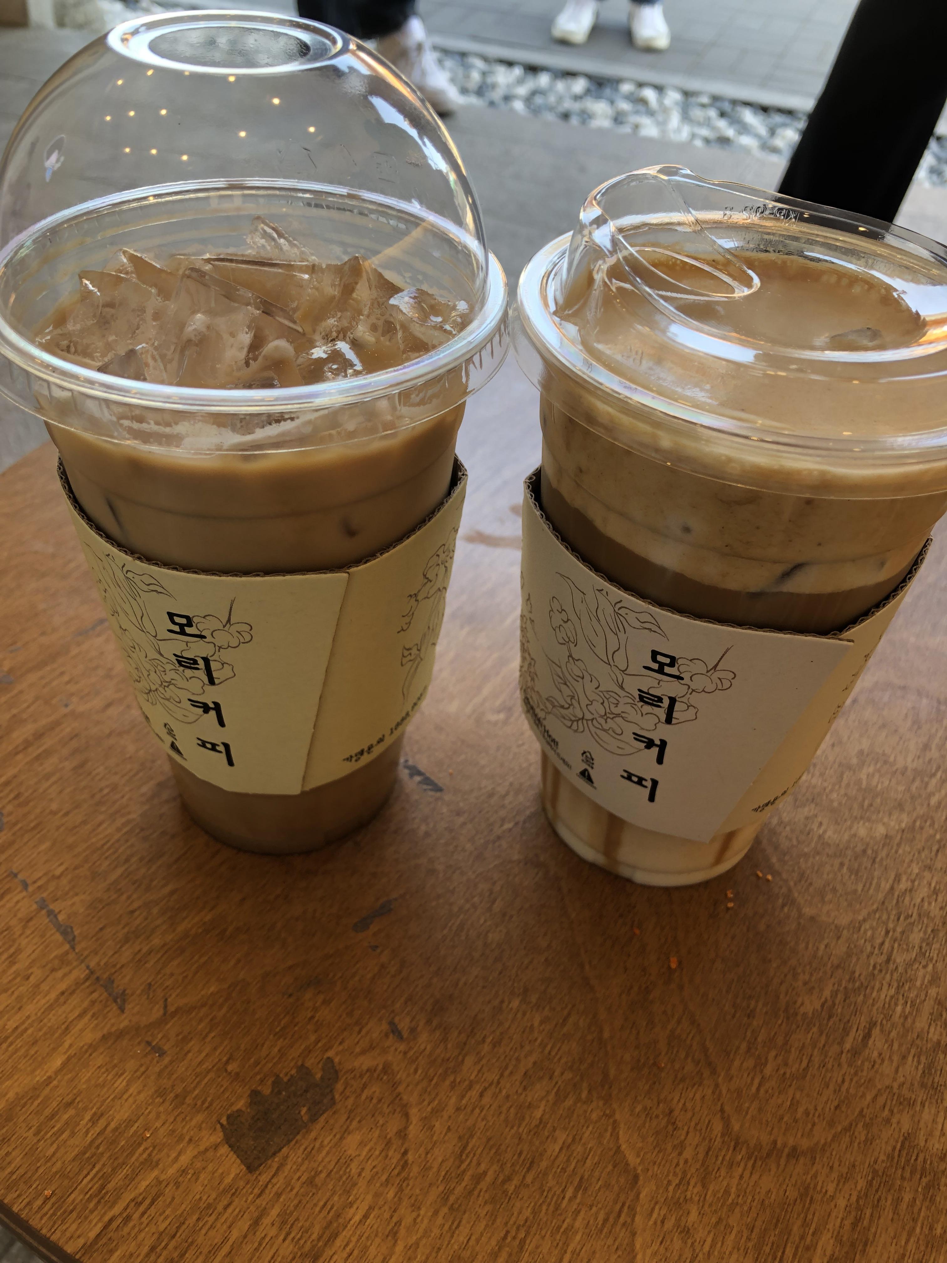 커피 종류도 많이 주문하지만 율무쉐이크를 많이 주문하시더라구요~ 저흰 율무라떼를 시켰는데 일반 라떼에 율무크림을 올린 형태의 커피입니다. 율무크림이 라떼와 섞이면서 오묘한 맛이 났습니다. 커피와 율무의 고소함이 증폭되어 색다른 맛이 나고 맛있었습니다. 다음엔 율무쉐이크를 먹어봐야겠어요!