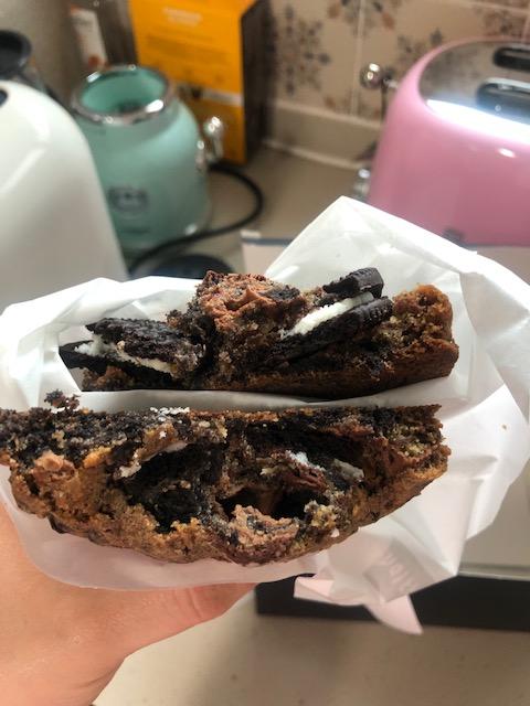 실온의 쿠키 식감은 부드럽습니다. 그리고 많이 단 편이었어요~ 오레오 쿠키가 중간중간에 많이 박혀있습니다. 그래서 그런지 오레오 맛이 분명하게 나는 쿠키였습니다.