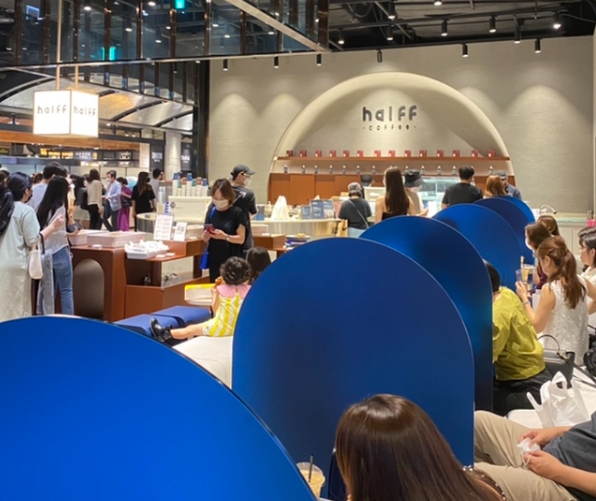 하프커피 대구점은 신세계백화점 지하1층 식품관에 위치해 있습니다. 제가 방문한 시간은 오전이었는데, 꽤 많은 사람들이 줄을 서서 커피를 주문하고 있었습니다.