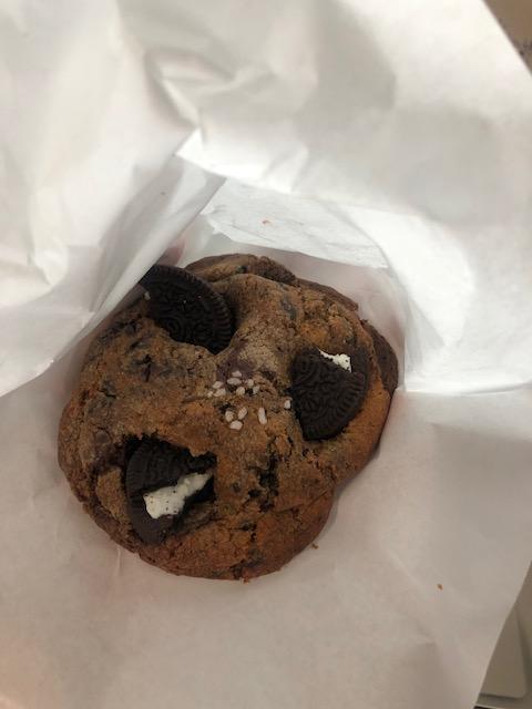 제가 구매한 쿠키(약과, 다크초코, 오레오, 너츠) 중 오레오 쿠키입니다. 쿠키가 꽤나 큽니다. 일반 여성 손바닥보다 큽니다. 두께도 두툼한 편이네요~